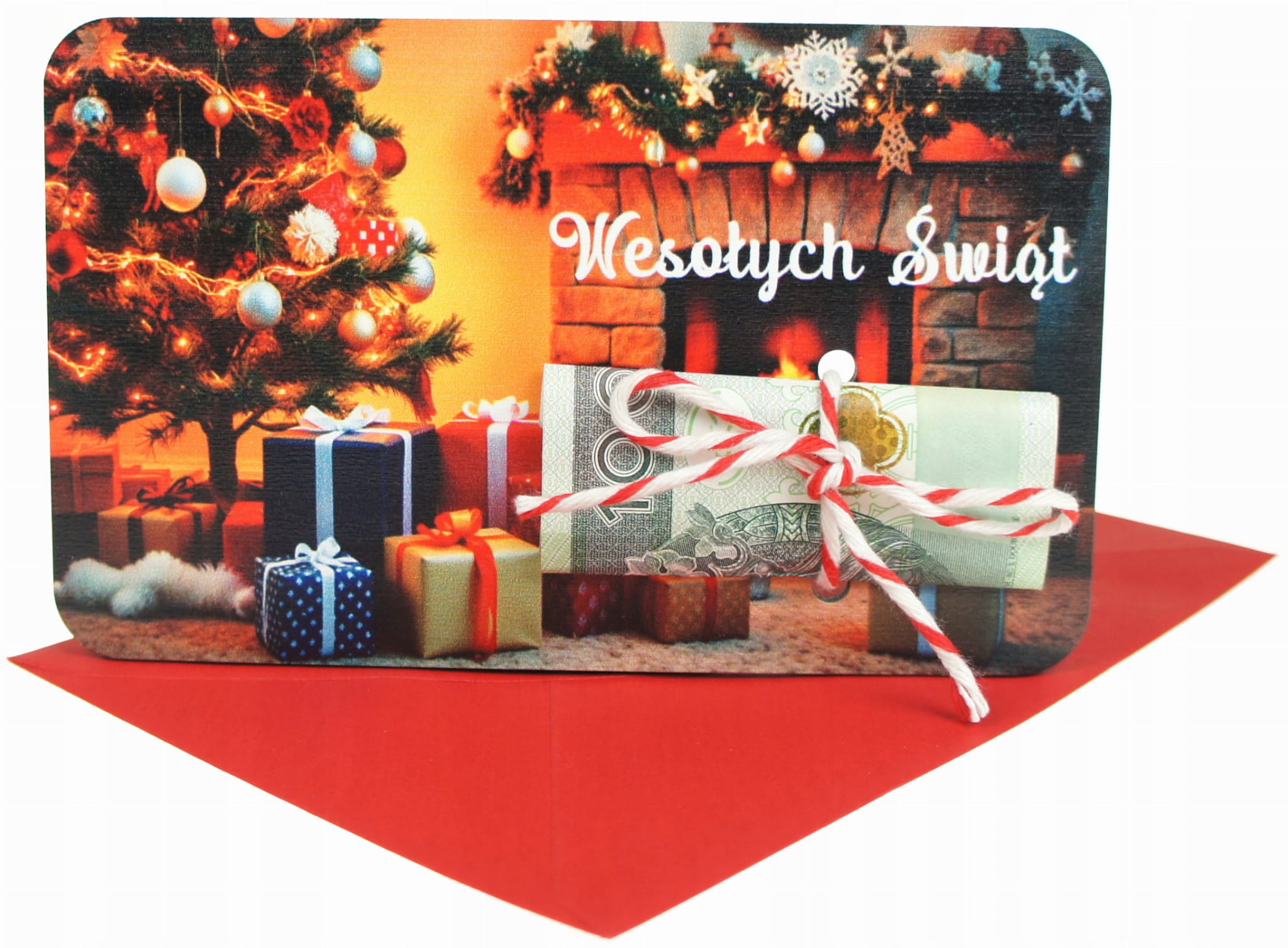 - Biało-czerwony sznureczek do przewiązania banknotu