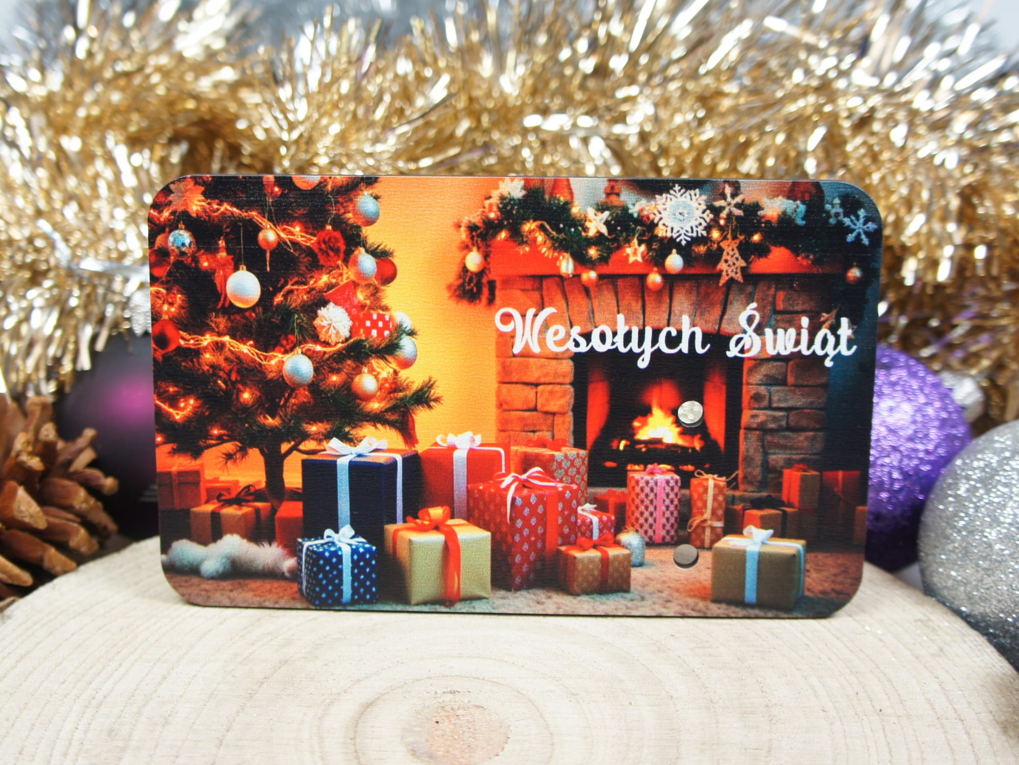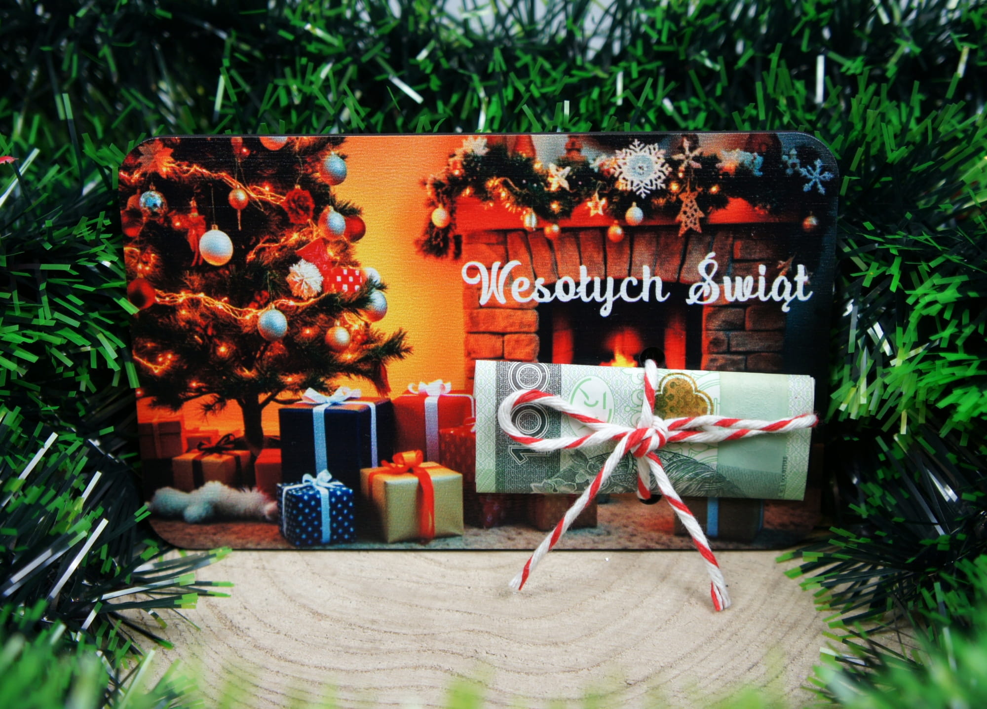 Drewniany świąteczny BON podarunkowy na pieniądze prezent na święta mikołaj