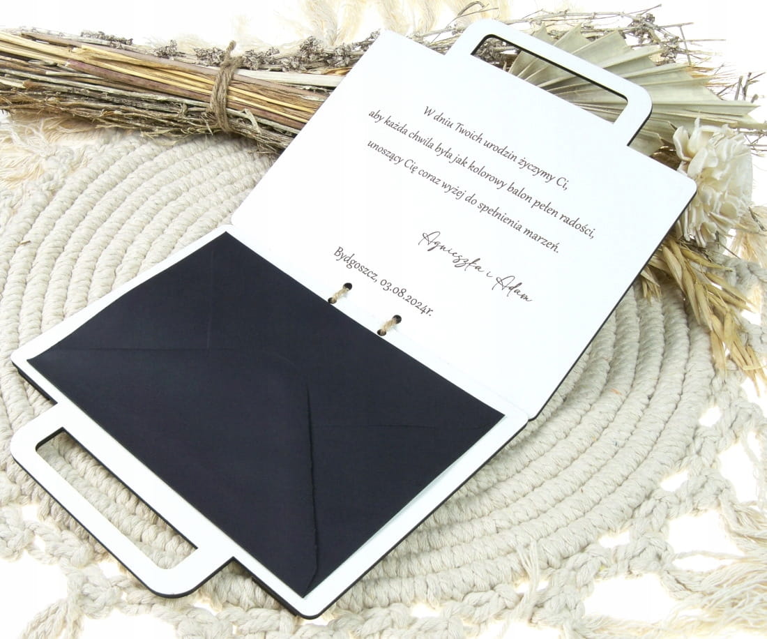 Nieszablonowa, personalizowana kartka z ażurowym frontem, która wyróżni Twoje życzenia i będzie idealnym dopełnieniem do prezentu.