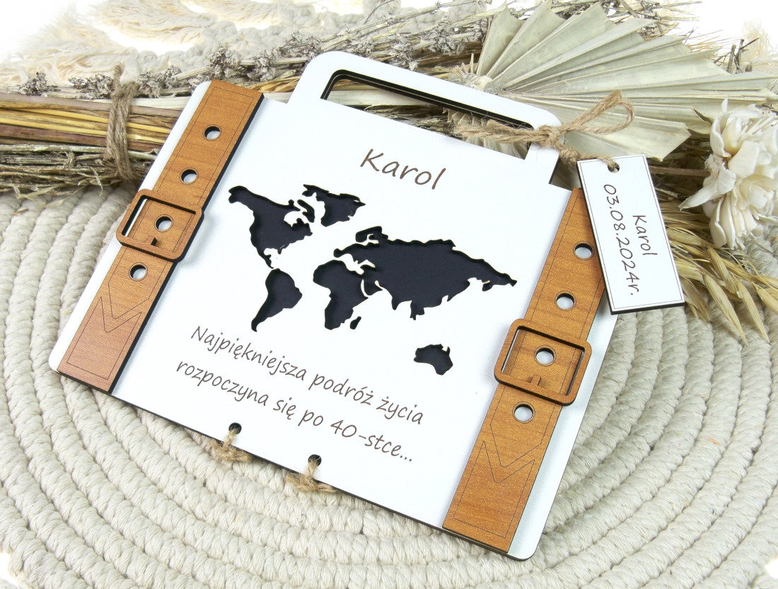 Kartka Walizka Na Urodziny Imieniny Na Pieniądze Pamiątka Grawer czarna