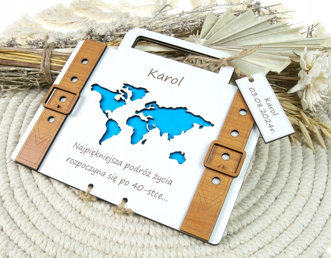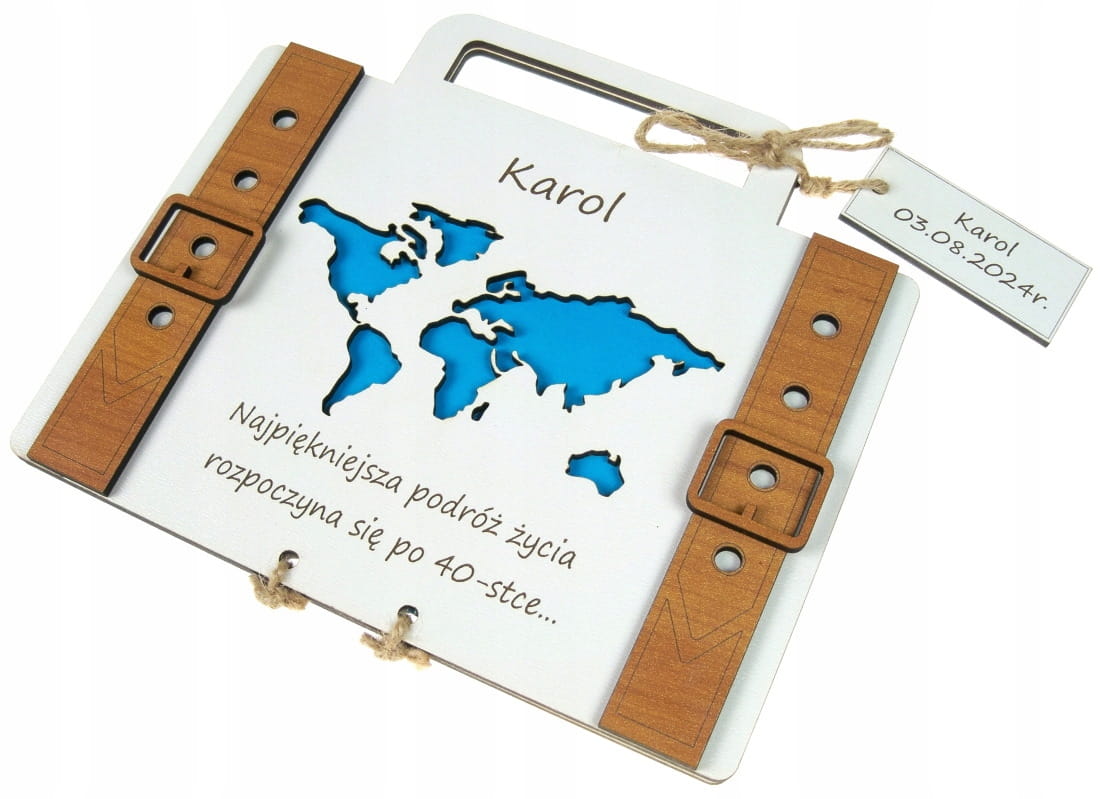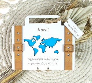 Kartka Walizka Na Urodziny Imieniny Na Pieniądze Pamiątka Grawer niebieska