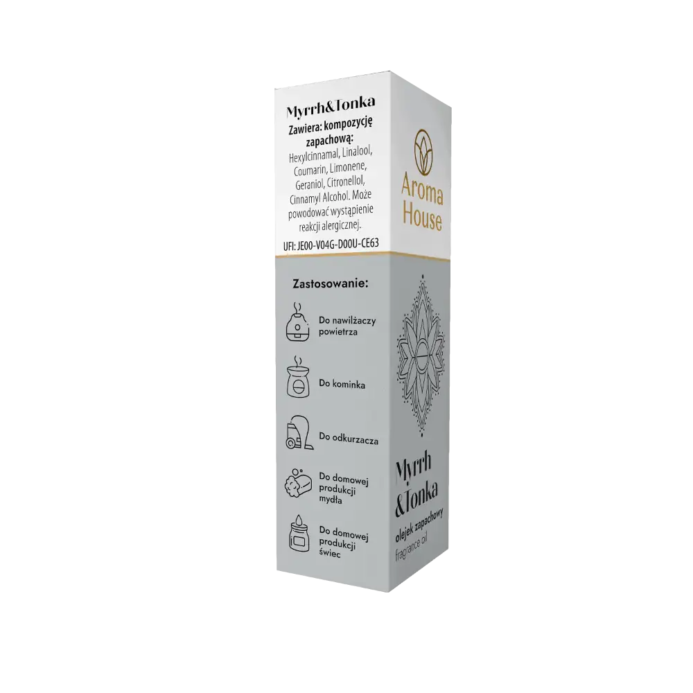 Olejek zapachowy MYRRH & TONKA to zapach kojarzony z egzotycznym i intensywnym charakterem. Mirra to wonna żywica o głębokim, dymnym zapachu, natomiast tonka dodaje kompozycji słodki i kremowy aromat.