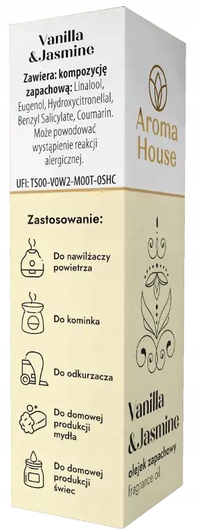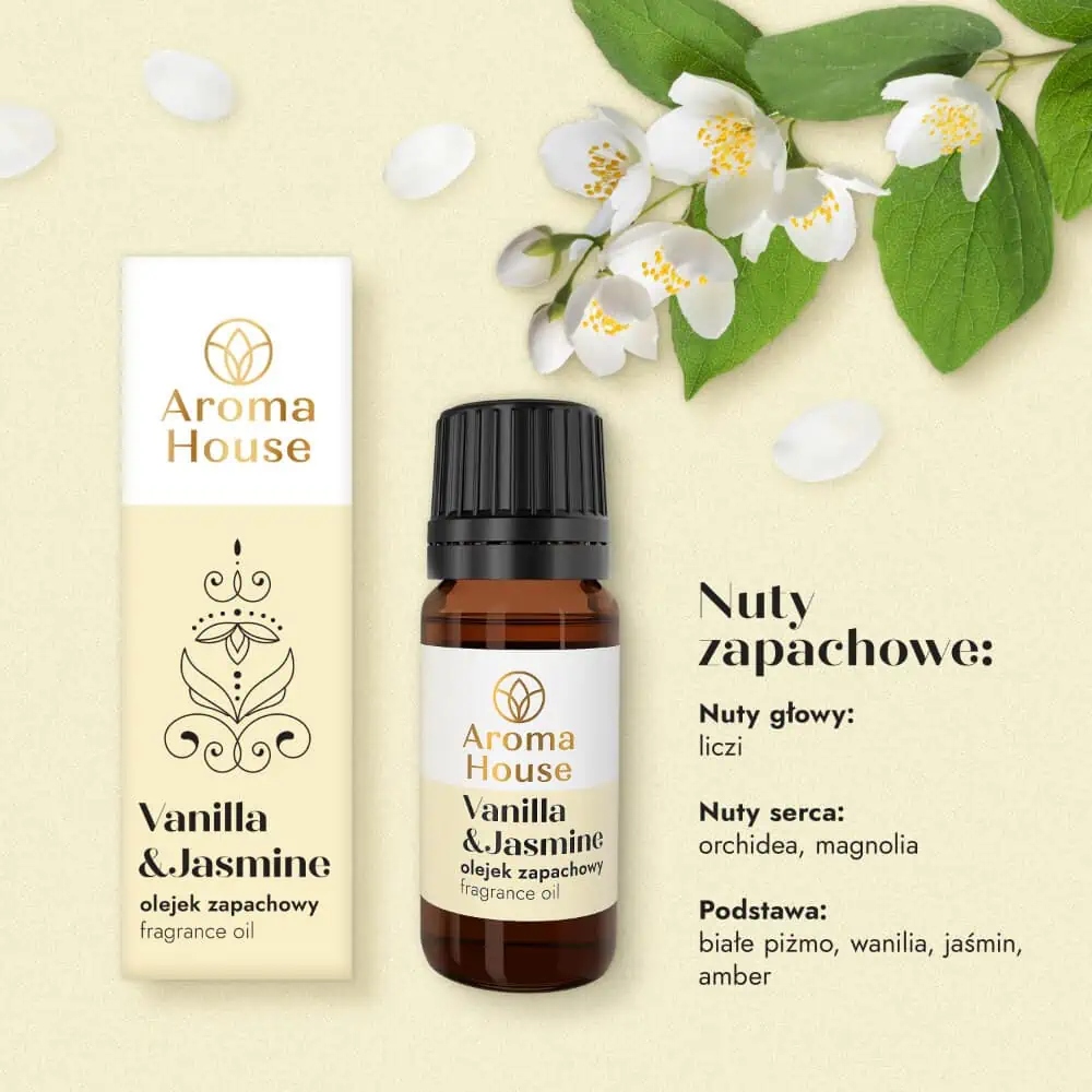 Olejek zapachowy Aroma House Vanilla & Jasmine 10ml - Wanilia, Kwiatowy