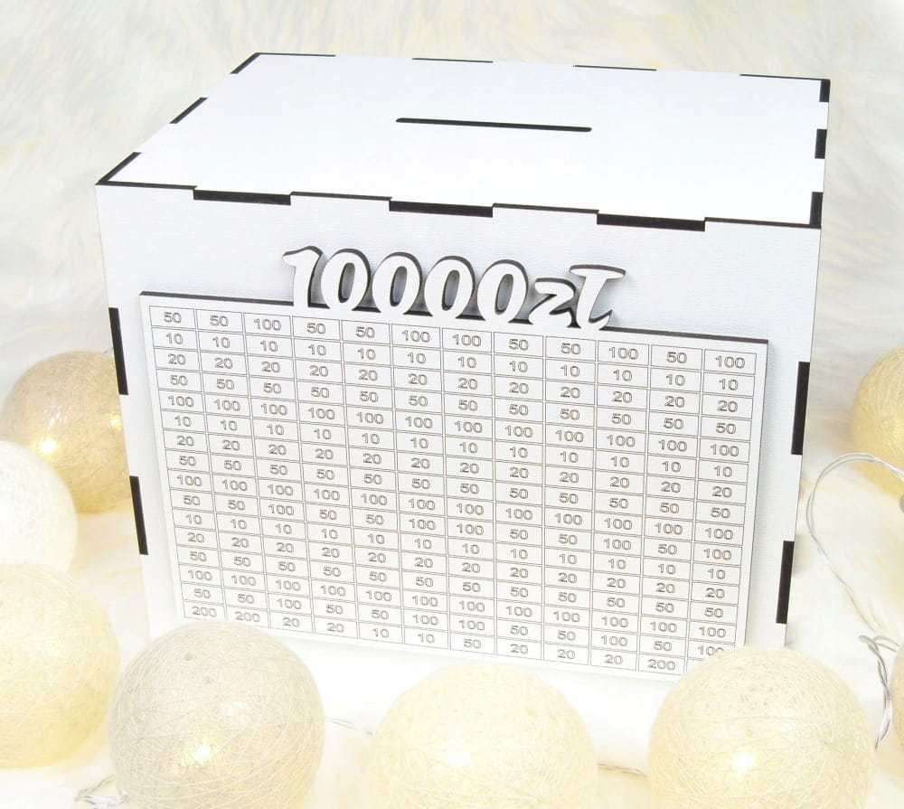 Otwierana Skarbonka wykreślana 10000zł oszczędzanie, na prezent, grawer