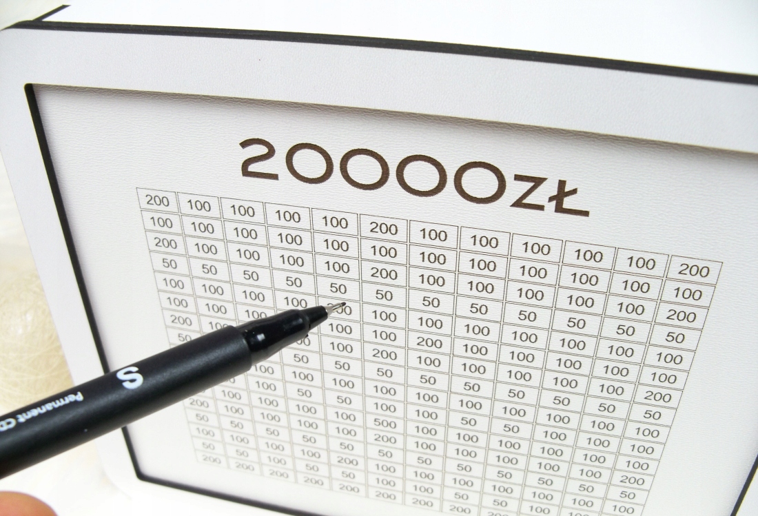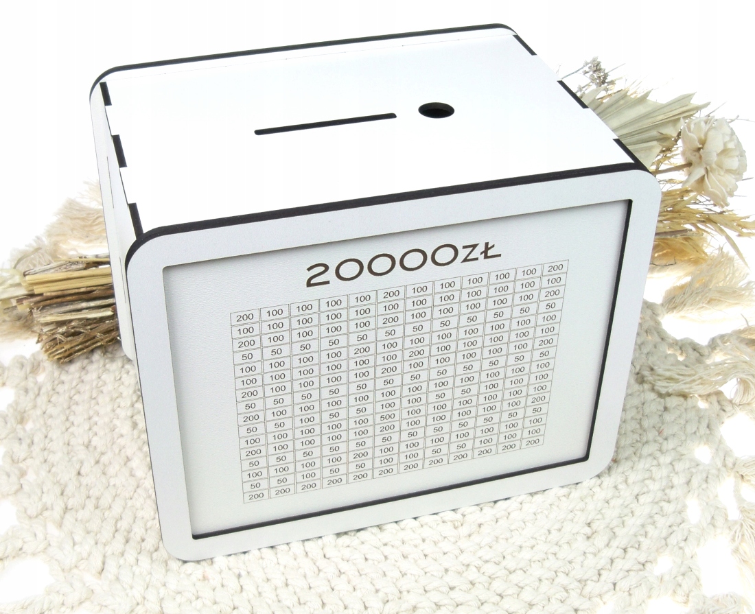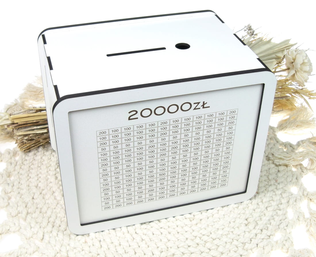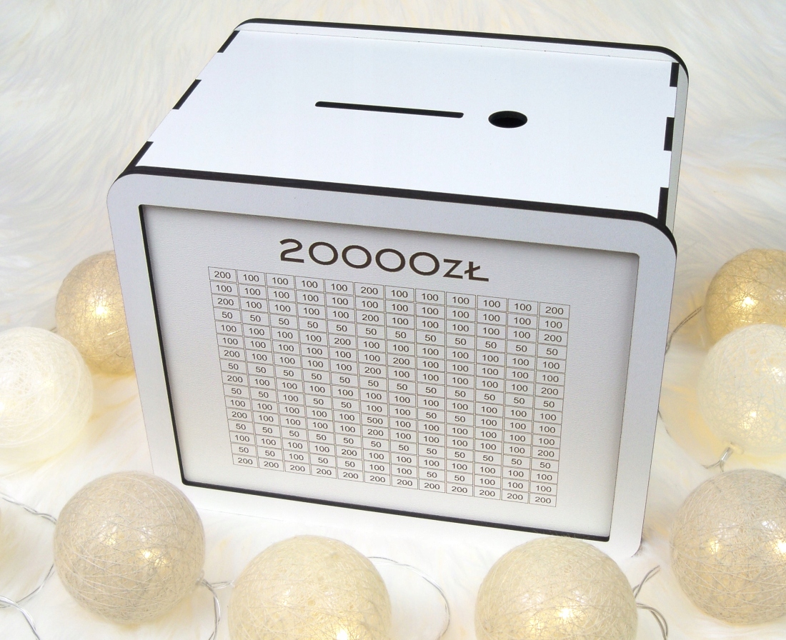 Otwierana Skarbonka wykreślana 20000zł oszczędzanie, na prezent, grawer