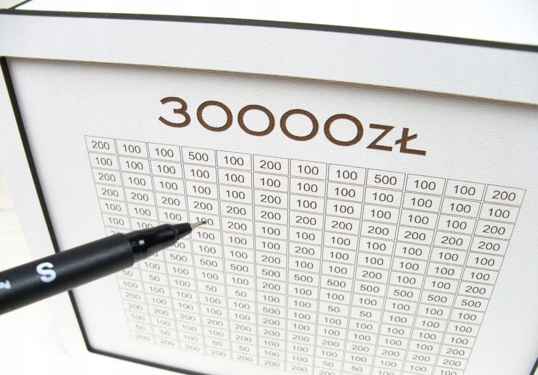 Otwierana Skarbonka wykreślana 30000zł oszczędzanie, na prezent, grawer