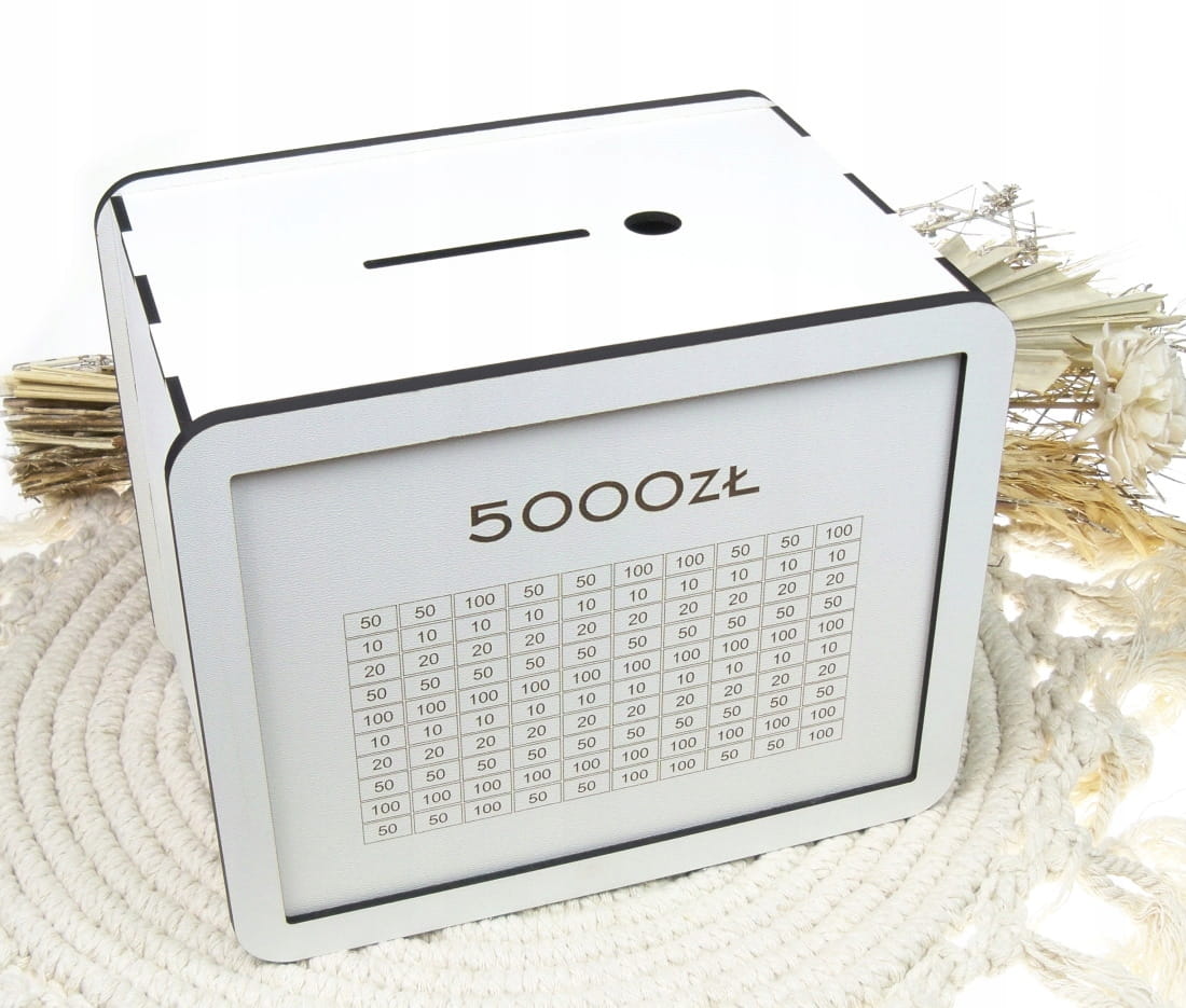 Otwierana Skarbonka wykreślana 5000zł oszczędzanie, na prezent, grawer