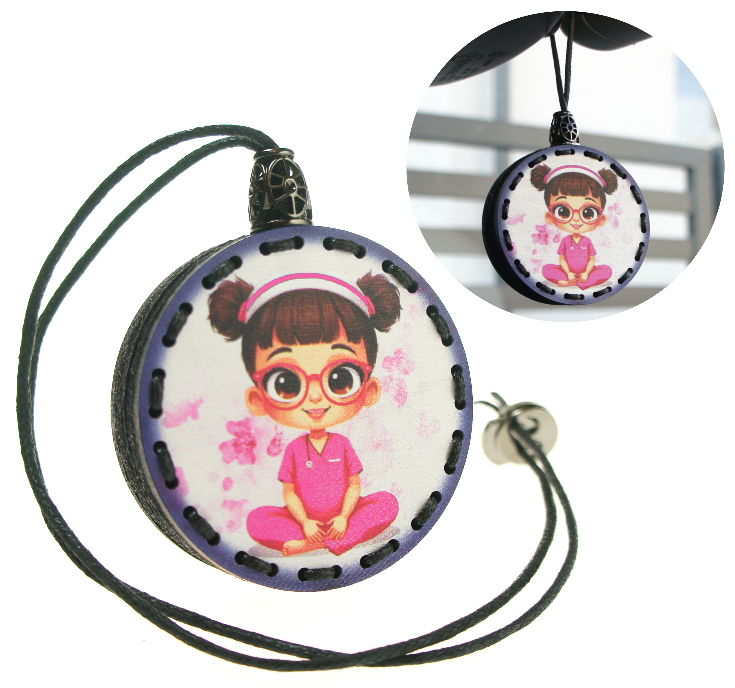 Zapach do samochodu drewniana malowana zawieszka do auta Deconet UV - Położna