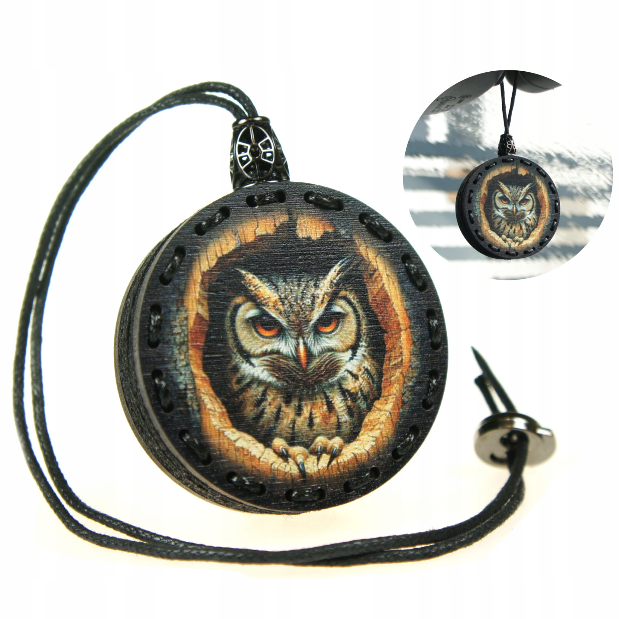 Zapach do samochodu drewniana malowana zawieszka do auta Deconet UV - Sowa
