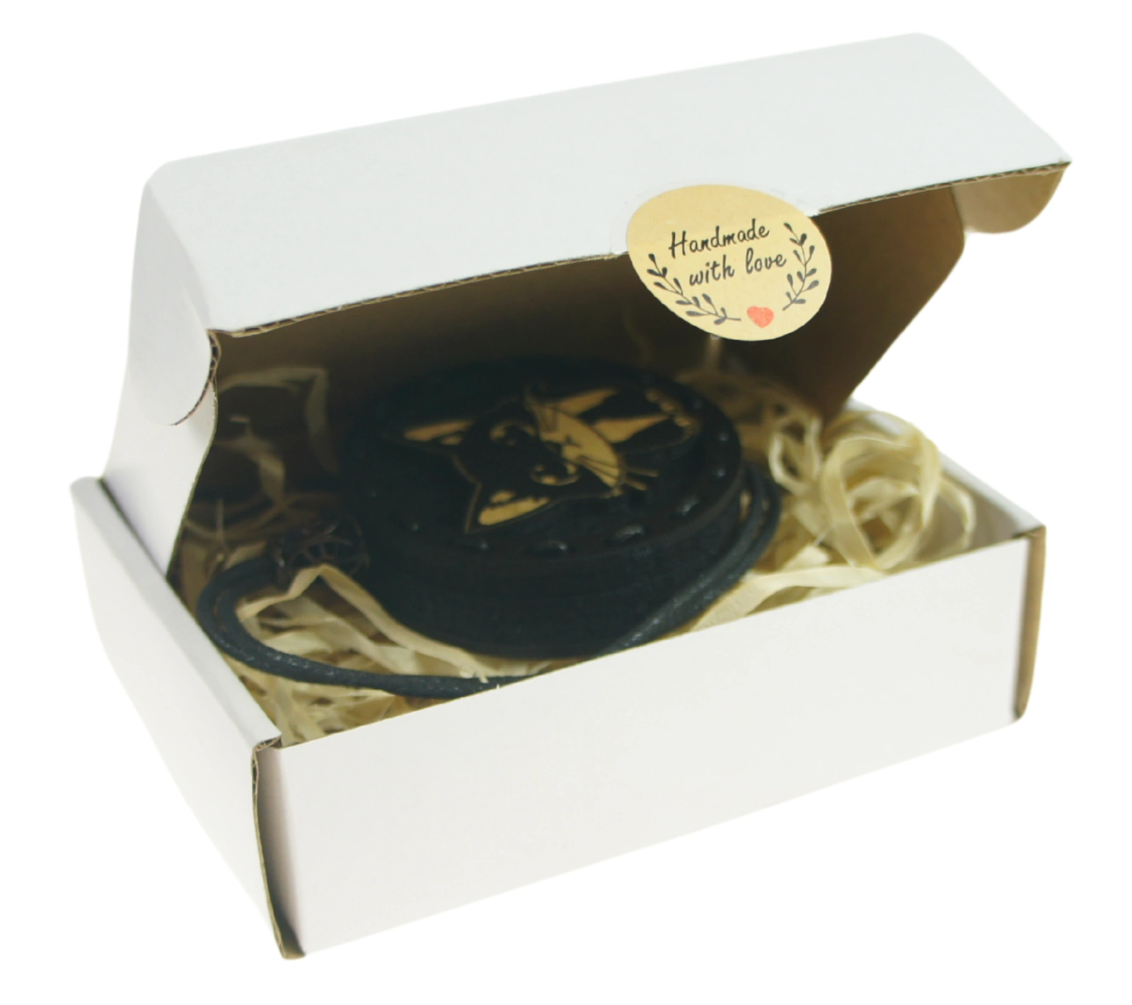 Zawieszka pakowana jest w pudełko wypełnione ekologiczną wełną drzewną potocznie nazywaną "siankiem".