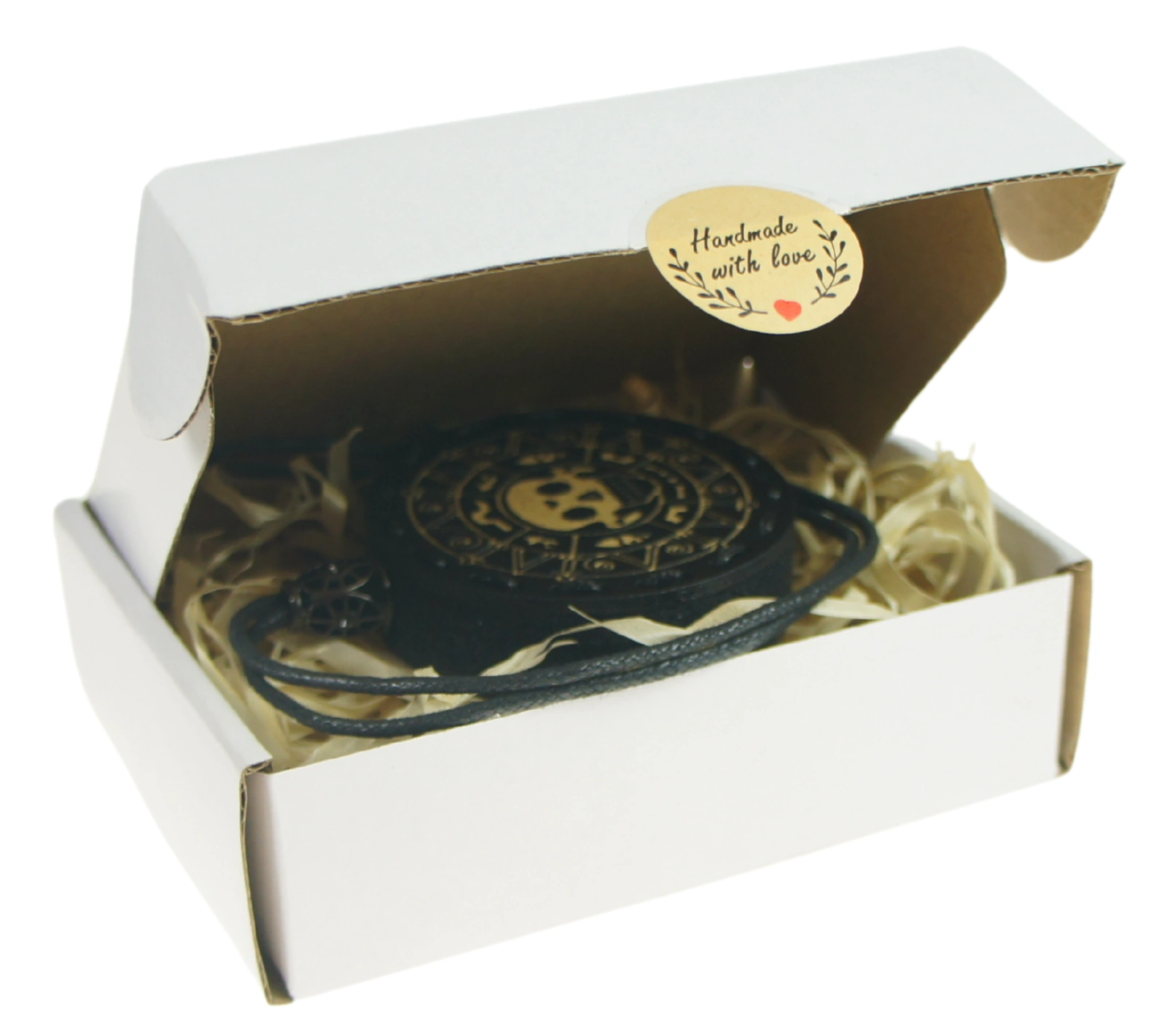 Zawieszka pakowana jest w pudełko wypełnione ekologiczną wełną drzewną potocznie nazywaną "siankiem".