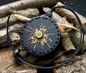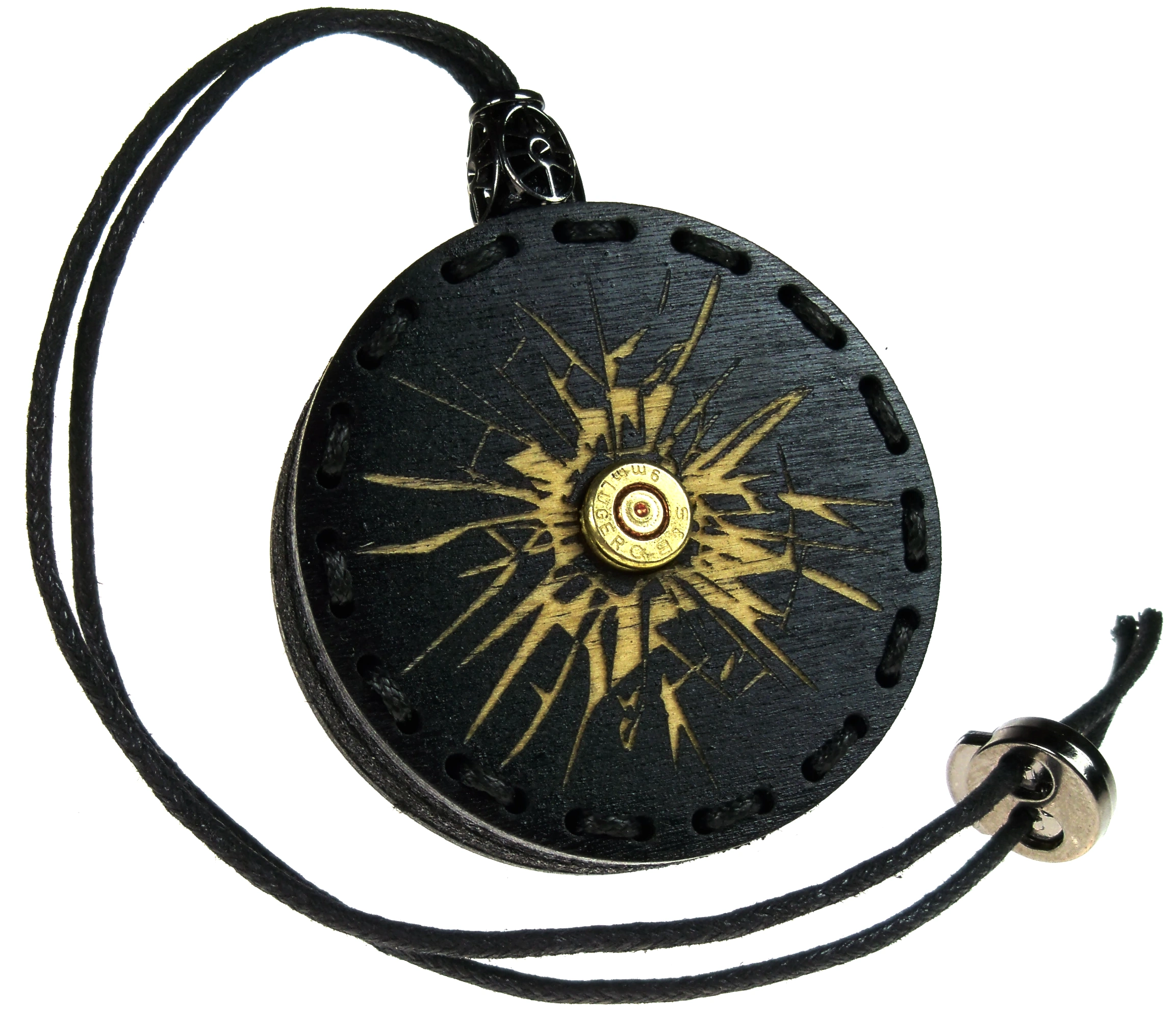 Przez zawieszkę przechodzi na wylot nabój Parabellum 9x19mm stosowanym aktualnie w większości typów pistoletów wojskowych i policyjnych. Spłonka jest wystrzelona i pozbawiony jest cech bojowych. Nie jest niebezpieczny.
