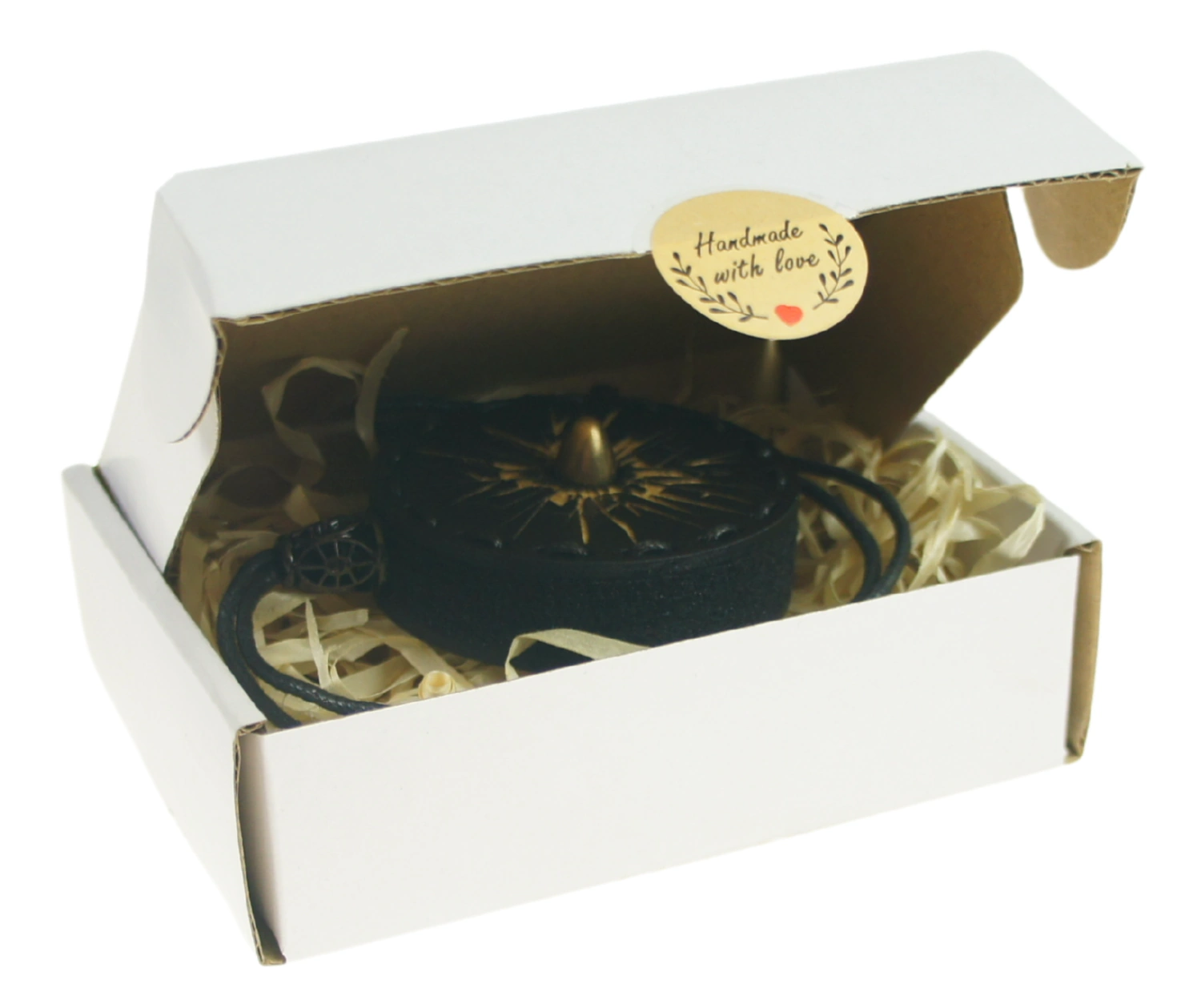 Pudełko zaklejamy naklejką "Handmade with love" i jest gotowe do wręczenia na prezent.