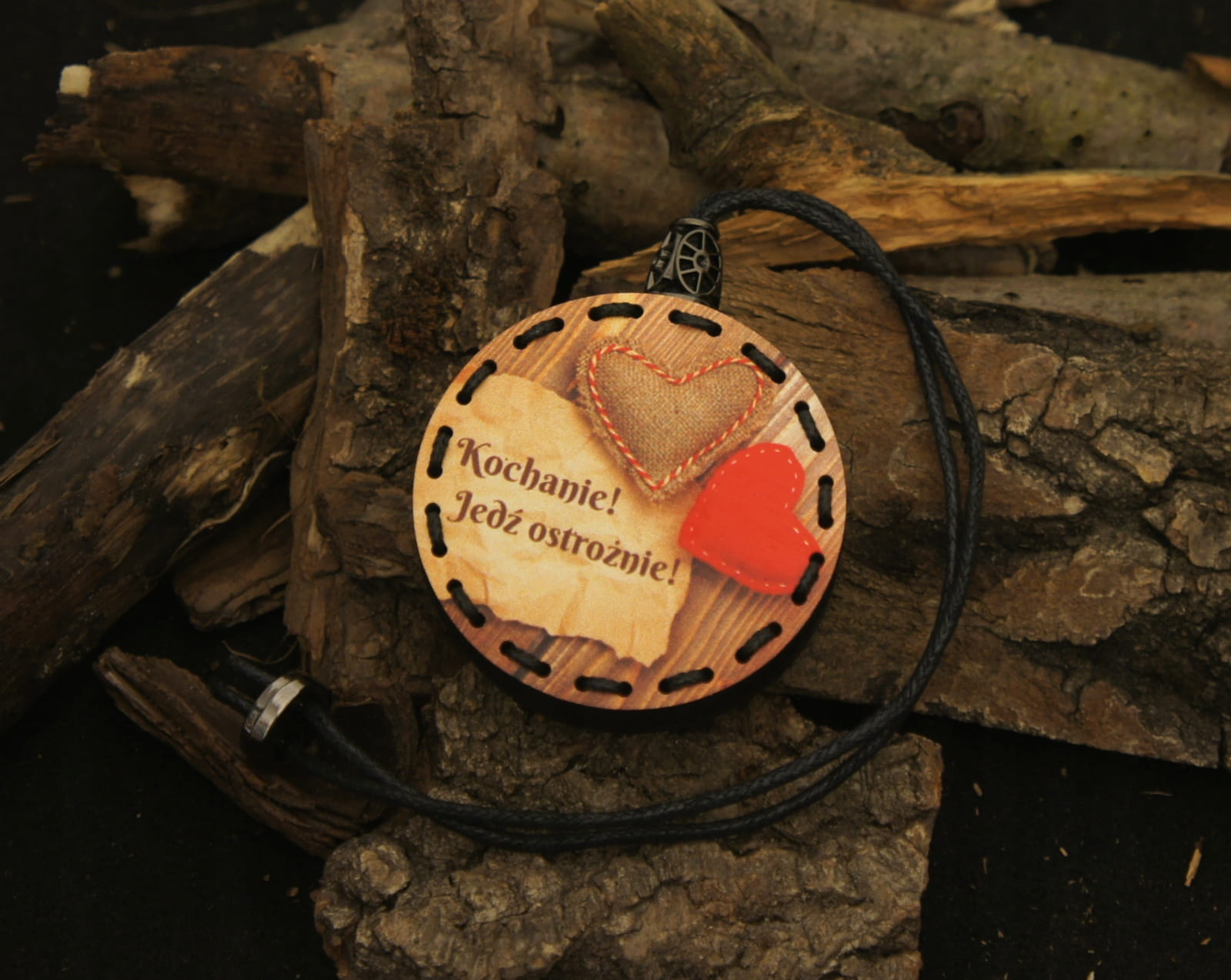 Wzór - Serca na drewnie z napisem "Kochanie ! Jedź ostrożnie !"
