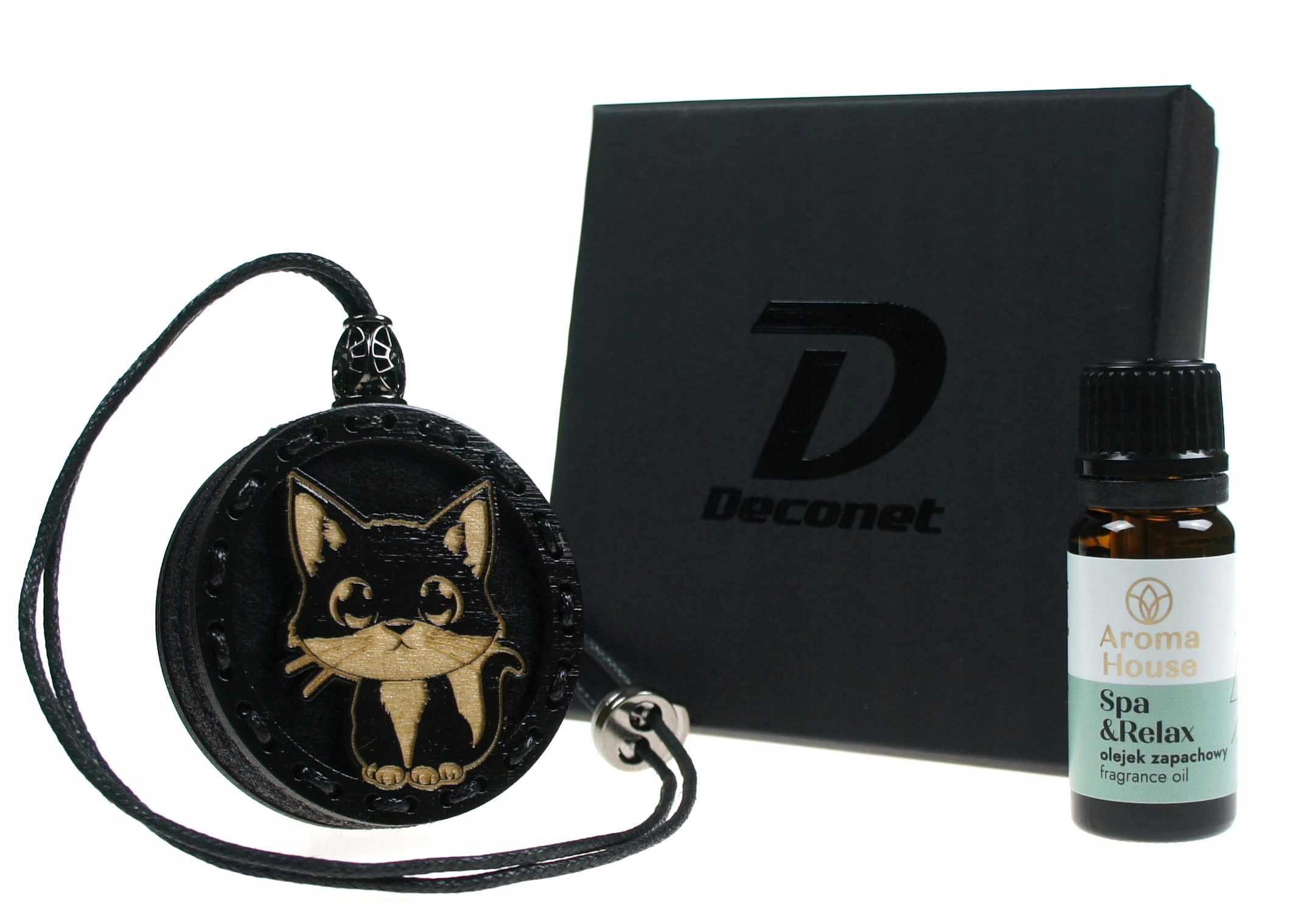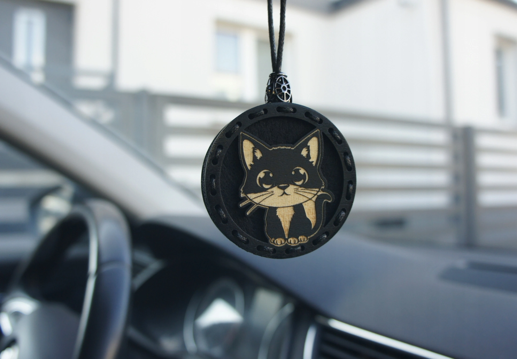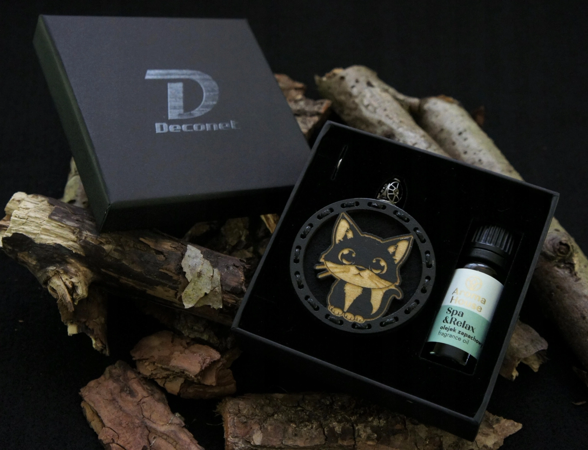 Zestaw - Zapach do samochodu drewniana zawieszka z filcem Deconet Black - Kot