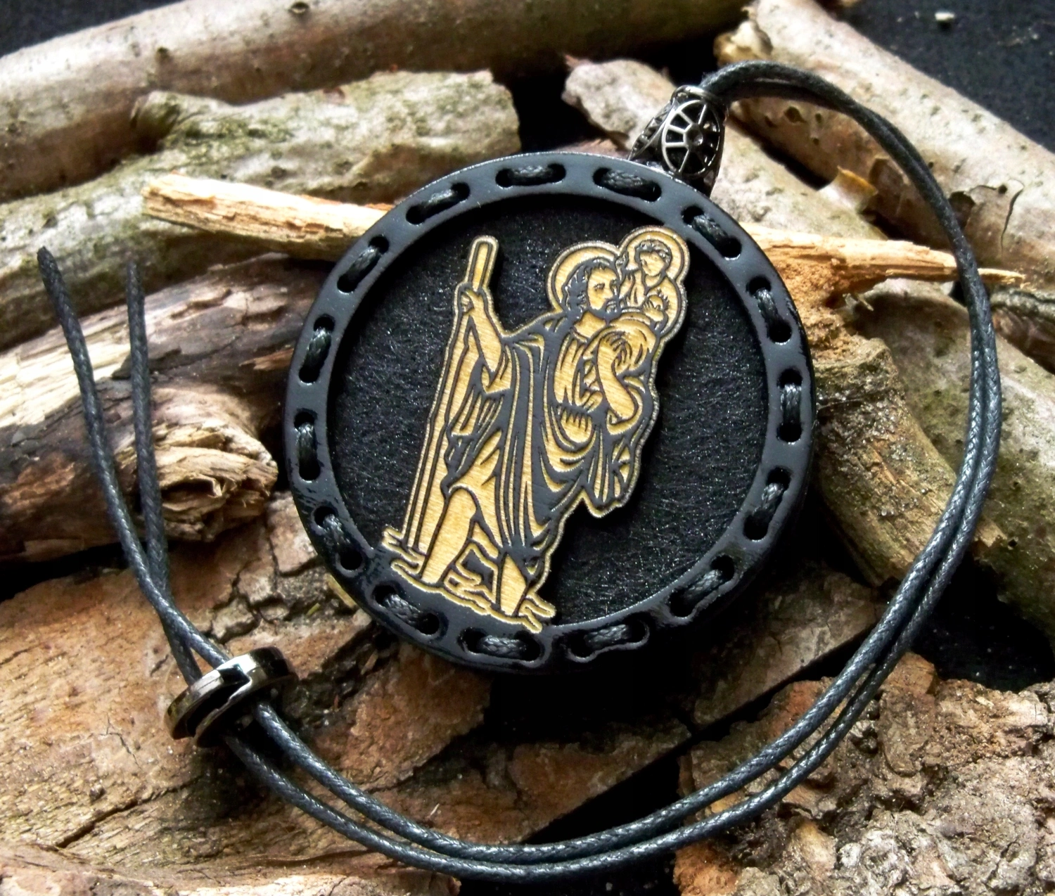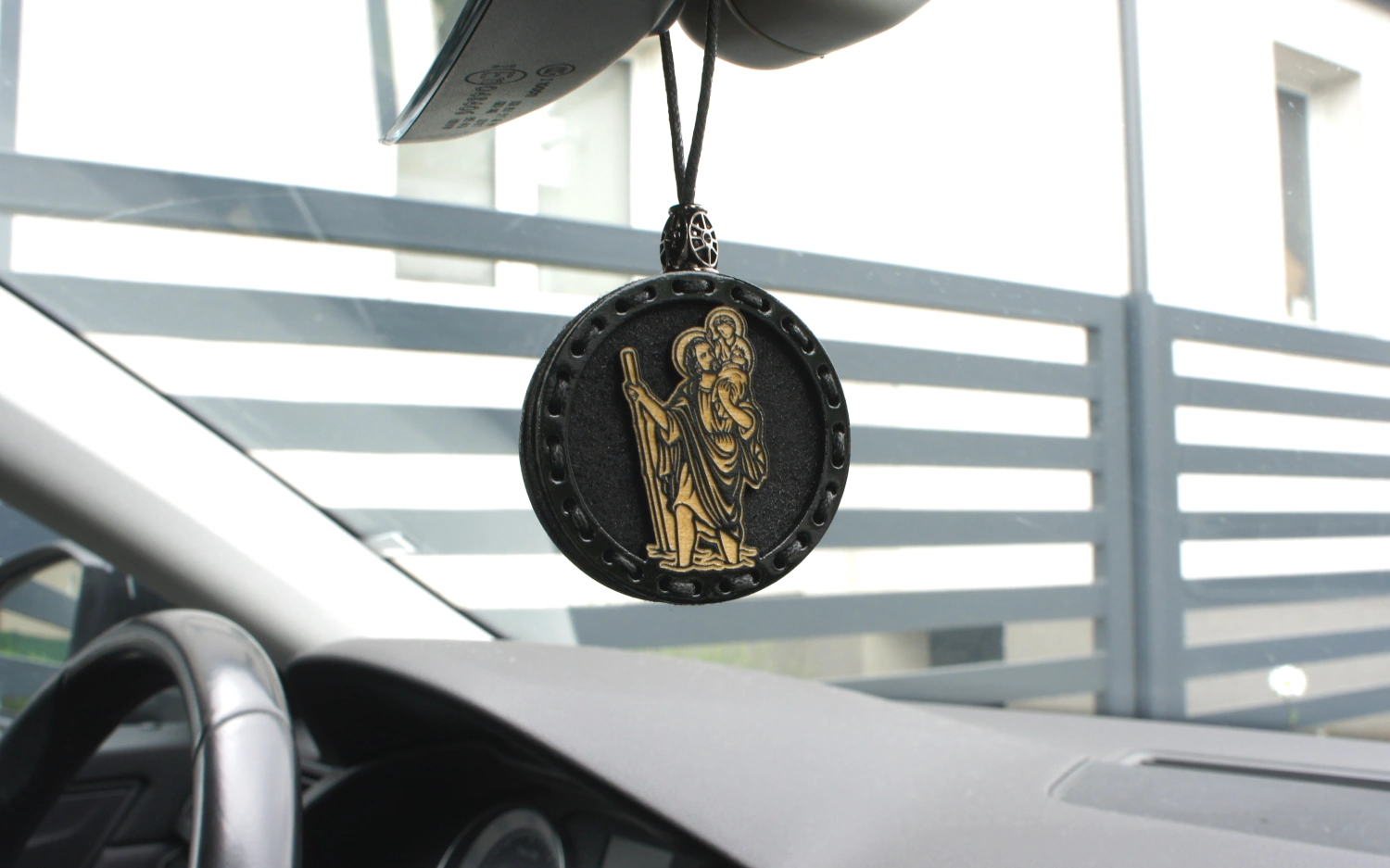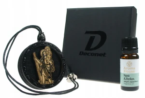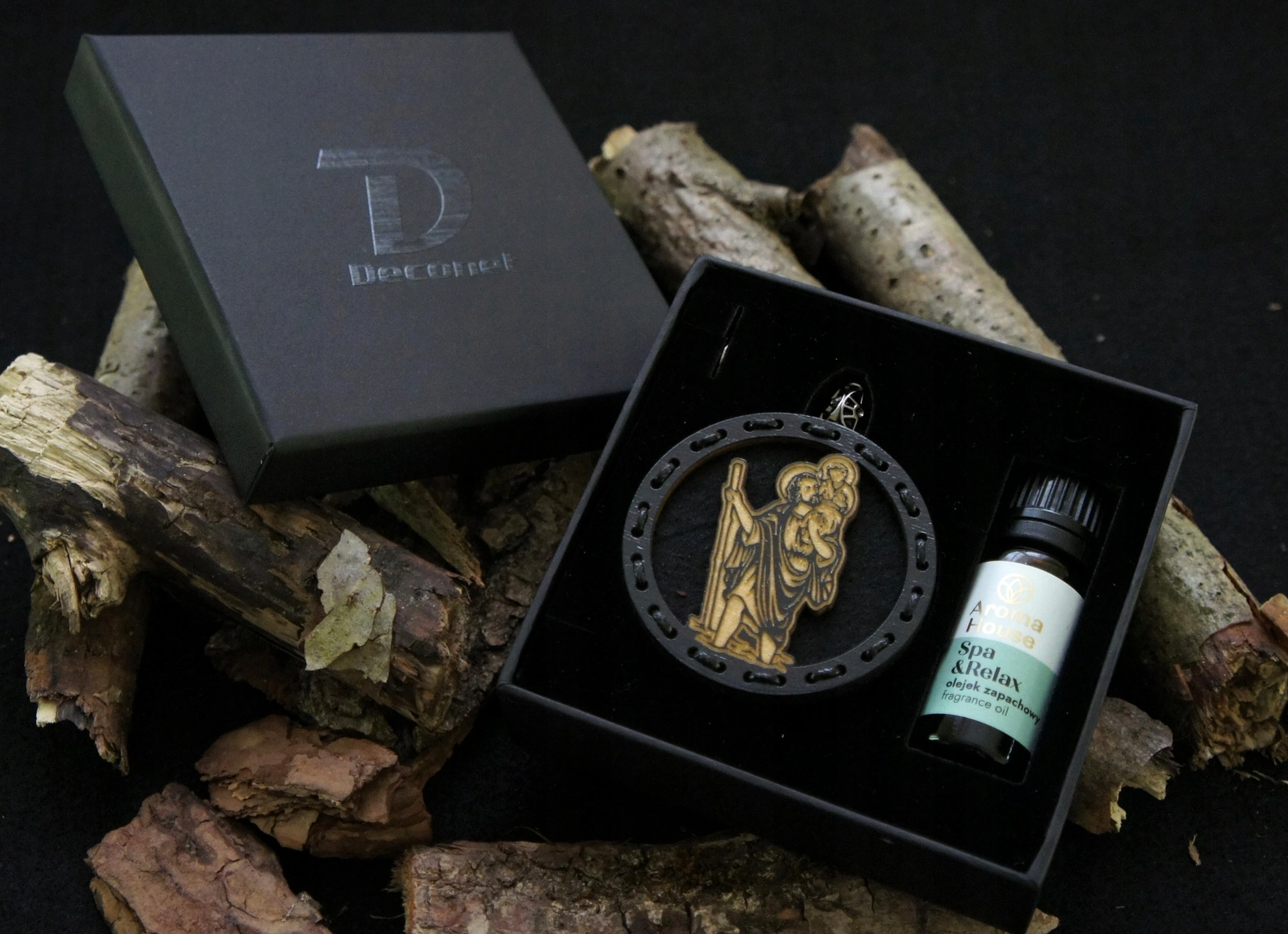 Zestaw - Zapach do samochodu drewniana zawieszka z filcem Deconet Black - Święty Krzysztof