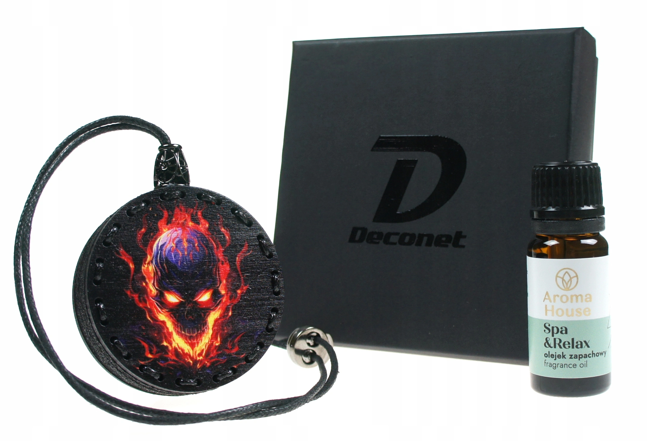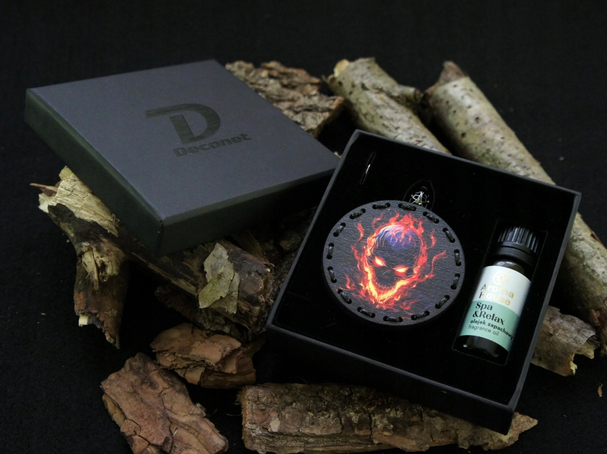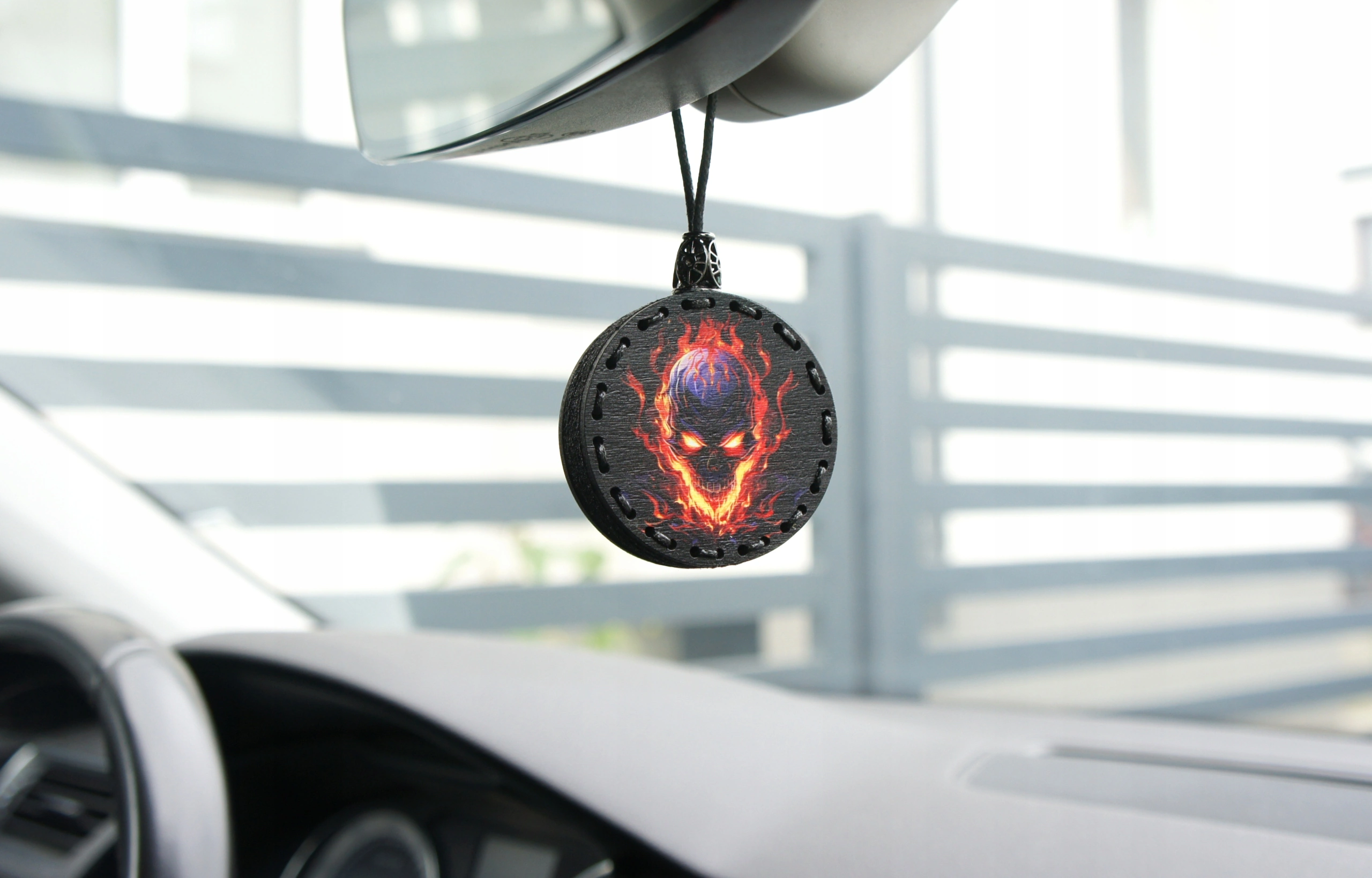Zestaw - Zapach do samochodu malowana drewniana zawieszka z filcem Deconet - Czaszka